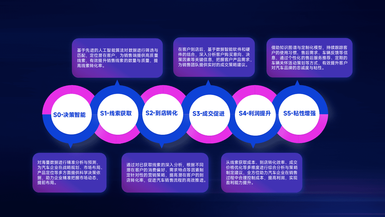 通过拓宽潜在客户来源、、优化线索分配并提高到店转化率,,,,以增强销售效率。。。同时,,,,利用线索数据不断优化分析模型,,,,有效提升转化率,,,扩大营销影响力。。。